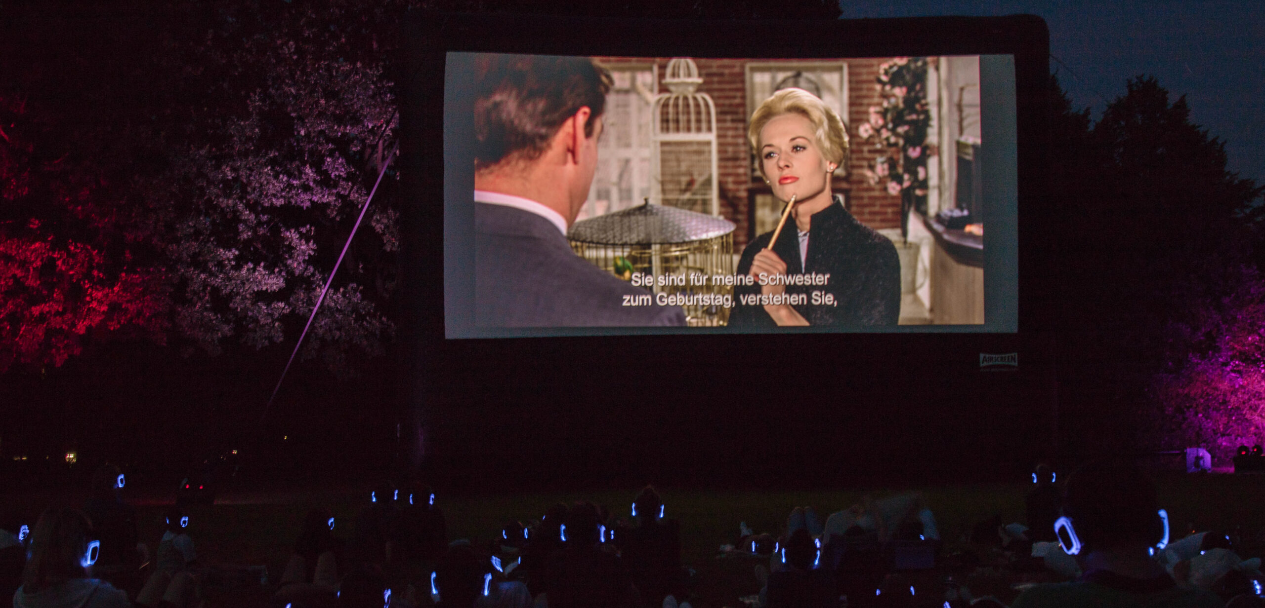 Aufgrund behördlicher Lärmschutzauflagen kann das Freiluftkino nur mit Kopfhörern stattfinden.
