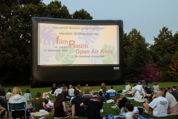 Im Juli 2025 fand wieder unter freiem Himmel im Stadtpark zu Eimsbüttel Filmgenüsse der besonderen Art statt. Große und kleine Besucher:innen ließen sich von unseren Programm unterhalten, das wir freudigerweiser um einen Tag, also schon von Mittwoch an bis zum Sonntag, erweitern durften. Besondere Höhepunkte waren die Sondervorstellungen „Hamburger Kinos zu Gast“, in denen an verschiedenen Tagen der filmRaum andere Hamburger Programmkinos zum OpenAir Kino einlud.