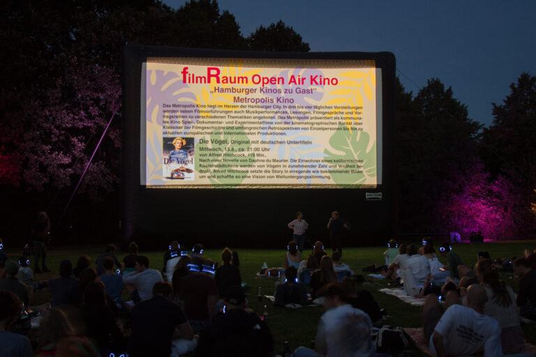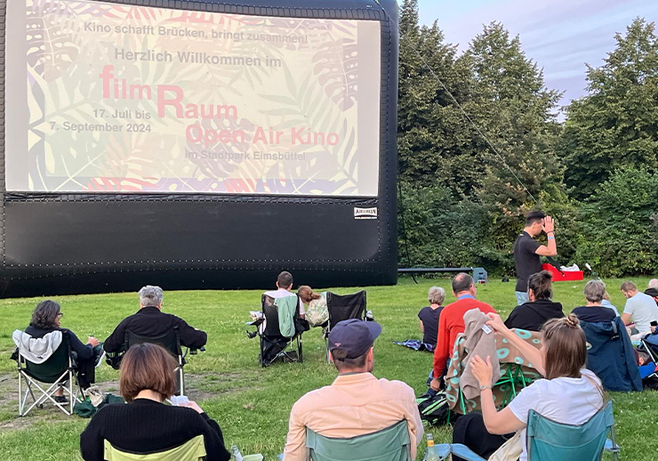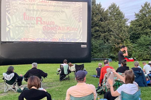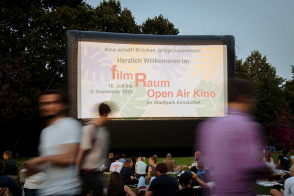 Im Juli 2025 fand wieder unter freiem Himmel im Stadtpark zu Eimsbüttel Filmgenüsse der besonderen Art statt. Große und kleine Besucher:innen ließen sich von unseren Programm unterhalten, das wir freudigerweiser um einen Tag, also schon von Mittwoch an bis zum Sonntag, erweitern durften. Besondere Höhepunkte waren die Sondervorstellungen „Hamburger Kinos zu Gast“, in denen an verschiedenen Tagen der filmRaum andere Hamburger Programmkinos zum OpenAir Kino einlud.